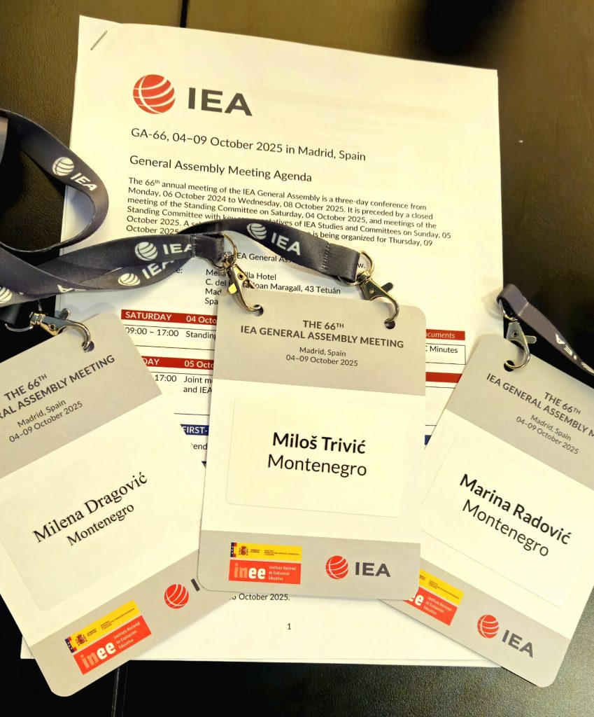 Od 6. do 9. oktobra 2025. godine u Madridu (Španija) održana je 66. Generalna skupština IEA, koju su zajednički organizovali Ministarstvo prosvjete i stručnog obrazovanja i Nacionalnog instituta za obrazovnu evaluaciju (INEE).
