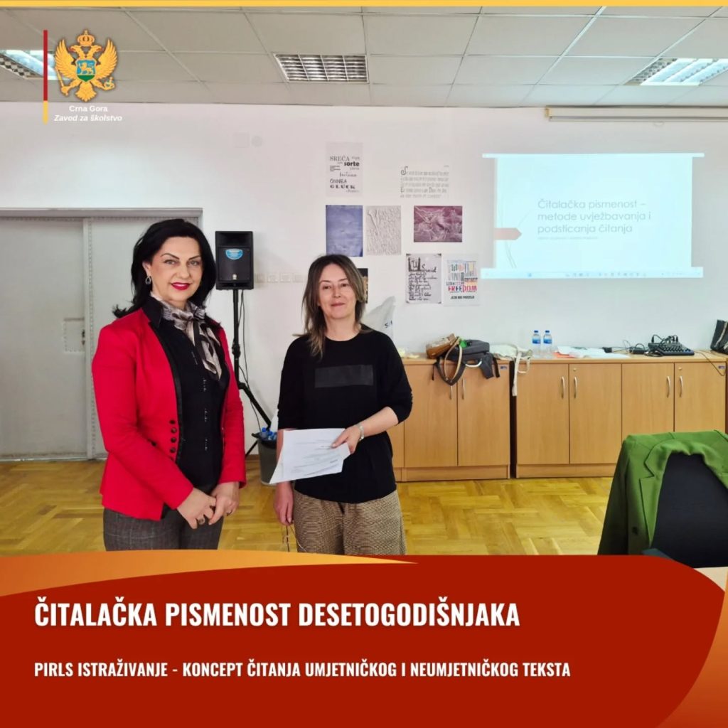 Trenerice prof. dr Dijana Vučković i Marina Radović, rukovoditeljka odjeljenja za međunarodnu saradnju, istraživanja i testiranja u Ispitnom centru, uspješno su vodile ovu obuku, omogućavajući nastavnicima i nastavnicama da kroz interaktivne radionice razviju strategije za unapređivanje čitalačkih vještina učenika i učenica. Fokus je bio na analizi procesa razvoja čitanja, primjeni metoda PIRLS istraživanja i kreiranju nastavnih aktivnosti koje podstiču razumijevanje teksta.