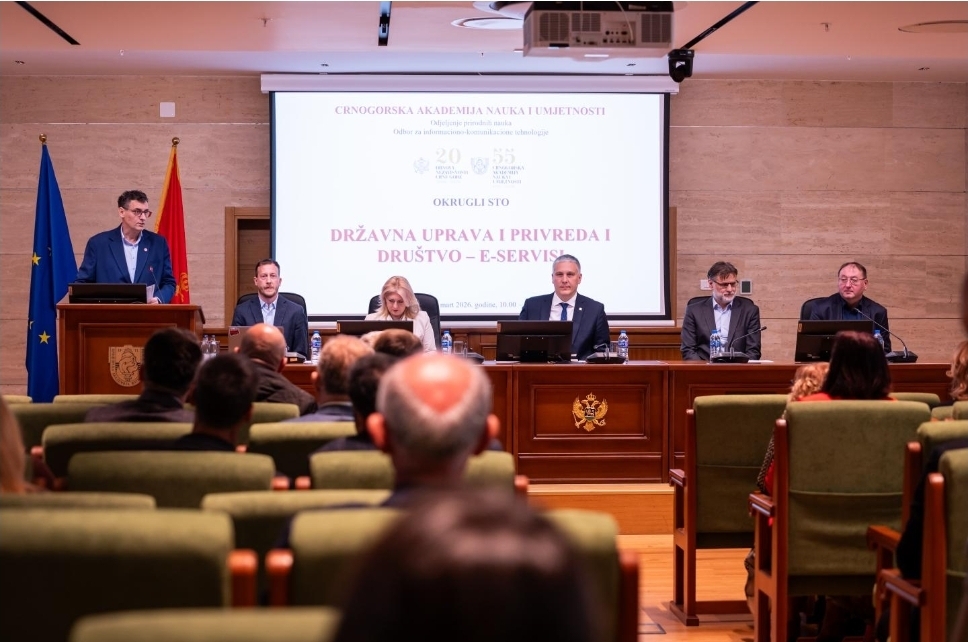 Okrugli sto ,,Državna uprava i privreda i društvo – e-servisi“ održan je 25. marta 2026. godine, u Crnogorskoj akademiji nauka i umjetnosti.