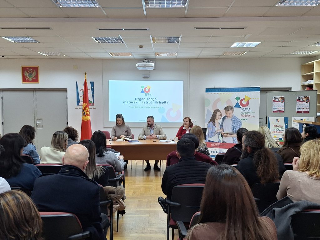 Putem prezentacije o realizaciji maturskog i stručnog ispita, kao i prezentacije namijenjene obuci test-administratora, koordinatori su detaljno upoznati sa svim fazama pripreme i sprovođenja ispita, uključujući organizaciju ispita i raspodjelu zaduženja.